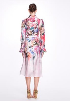 Quick view Compare Marchesa Painterly Floral Printed Satin Twill Tea Length Shirt-Dress Painterly floral printed satin twill tea length shirt-dress with ruffle at cuff. Color: Painter…